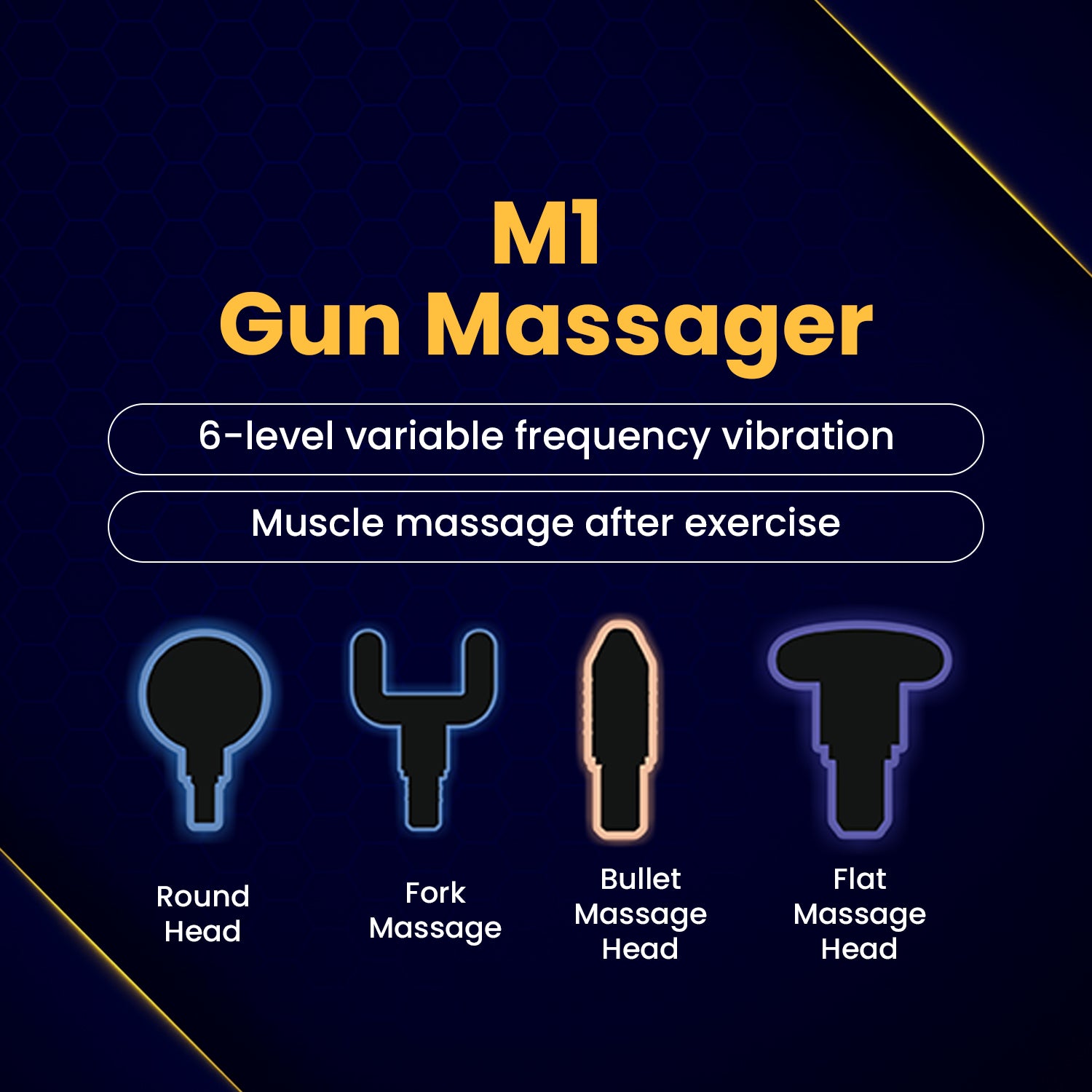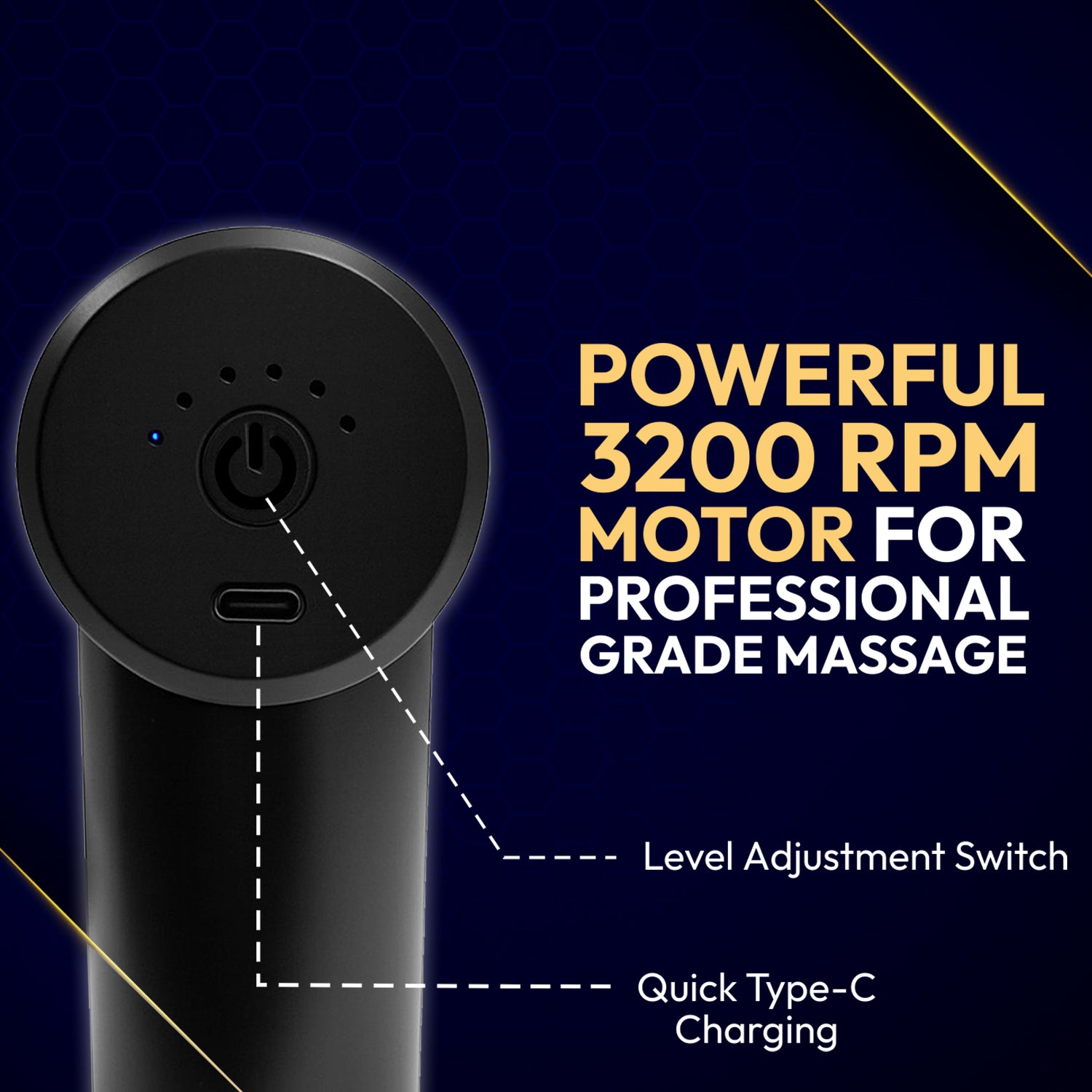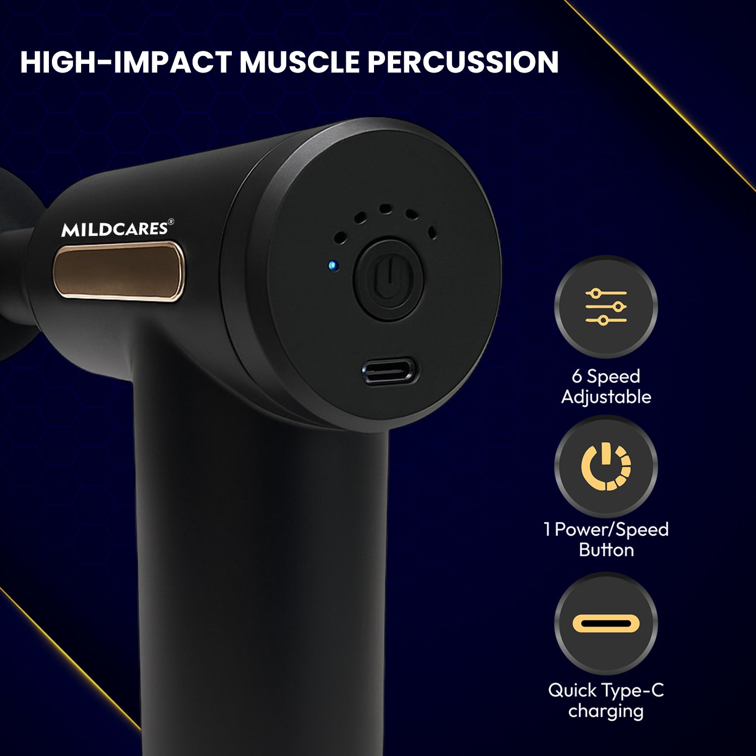 Mildcares Full Body Massager Gun for Pain Relief | Deep Tissue Therapy | 6-Speed Settings, 4 Heads, Rechargeable Silent Motor – Electric Massager for Pain Relief Massager(Black)
