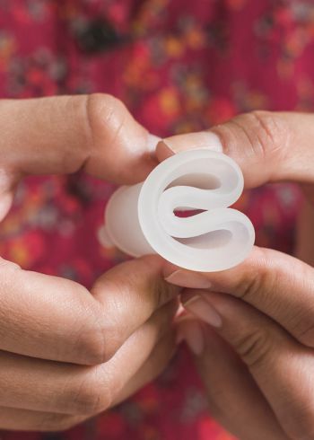 Pull down your panties or move them aside and place the wider end of the reusable funnel between your legs.